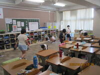 毎週火曜日と木曜日の昼休みは、そうじをします。週2回の掃除ですが、みんなしっかりと取り組んでいます。自分の分担の場所が終わったら、お友達の掃除場所も手伝っていて、とてもすばらしいです。1年生も、掃除の仕方がとても上手になりました。これからも、みんなで学校をきれいにしましょう。