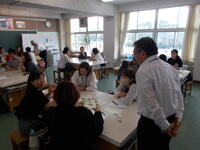 「算数かけはしプロジェクト」とは、昨年度から実施している小中連携の取り組みの一環で、柏中学校の数学の先生に定期的に来ていただき、本校の算数の授業に参加していただくものです。今回は、4年2組・1年1組・5年1組・3年1組の授業に参加していただきました。子どもたちは、中学校に数学の先生に丸をつけてもらい、とてもうれしそうでした。今後も、旭東小と柏中との連携を深めていく予定です。
