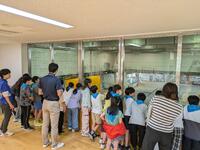 南部クリーンセンターの中を見学することができました。みんな真剣に見学していて、すばらしいです。この後は、みんな楽しみにしているお弁当タイムです。残念ながら、雨が降っているので、バスの中です。