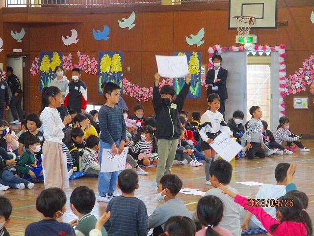 本日,3校時に体育館で「一年生を迎える会」を実施しました。司会・進行は,新児童会で