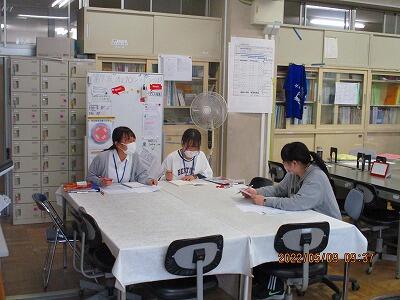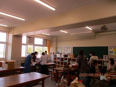 仕分けの作業をしていました。特別教室を使っての作業の後,次に「部会」ごとに