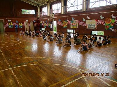 すがです。途中,水分補給の時間もありました。最後に自由時間も