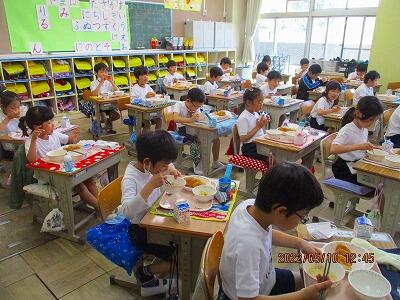 今日は5年生が2校時続きで調理実習をしていました。青菜のお浸しとゆでいもに