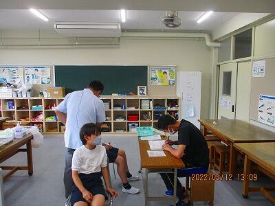 一人一人の歯式を聞き取り記録簿に転記していきます。担任は歯式を間違えたらい