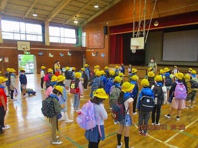 本日,一年生を迎える会がありました。児童会と一年生は体育館で