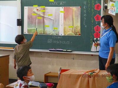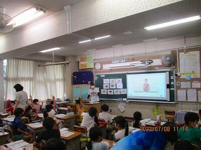 ともにフラッシュカードを使ったり,映像と一緒に返答したり,適切に進めていま