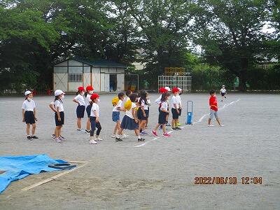 いるもので,すぐにグループごとに移動します。準備運動を済ませ