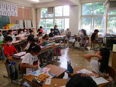 し合うところまでつながればよいのですね。外国語授業支援員の尾﨑先生も担任と