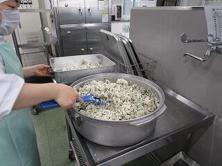 今日は6年生の卒業のお祝いで、赤飯を炊きました。赤飯はお祝い事や人生の節目などに食べる特別な料理です。もち米とあずきやささげなどの赤い豆を一緒に蒸して炊いて作ります。お赤飯の赤い色には、災いを払う意味があり、この先、災いなく、幸せに過ごせますようにという願いが込められています。