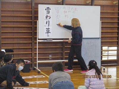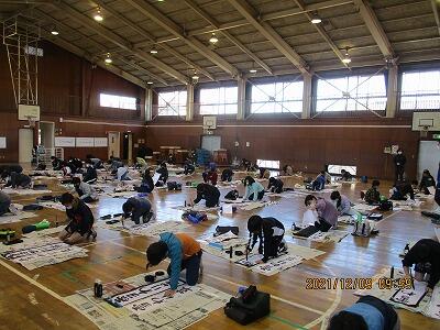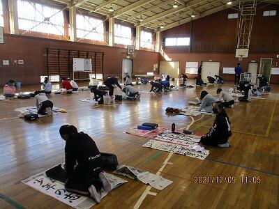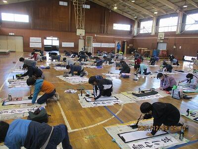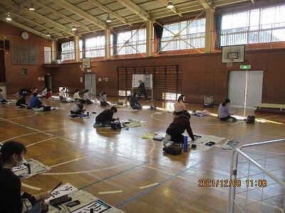 本日,体育館で5年生は1・2校時,6年生は3・4校時に書き初めの練習会を