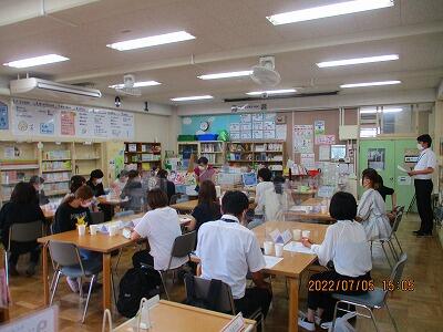 第1回 中部Ⅰ地区幼保こ小連絡協議会を開催しました。受付後図書室にお集まり