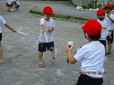 伊藤先生も参加して準備してくれました。大きなシャボン玉に歓声が上が