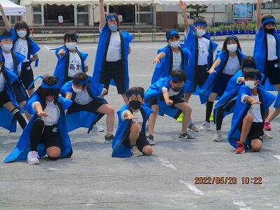 した。まだ,振り付けに自信がないような様子の子もいます。まだ,大丈夫。広い