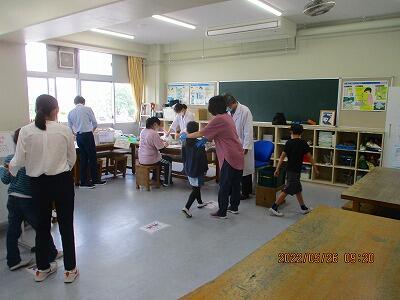 本日,9:00より耳鼻科検診がありました。校医さんが来られて準備されてすぐに