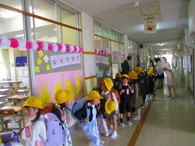 下校指導をしていきます。授業に続いて帰りの会は,無難にできたようです。今日は,昨日