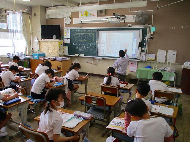 本日,3校時に2年生の教室と図書室を見ました。ちょうど1組は算数の「グラフとひょう」の