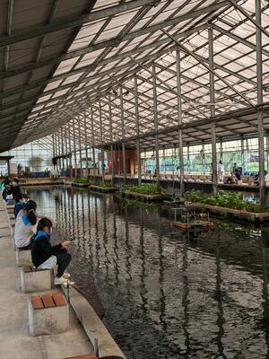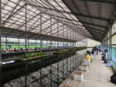 釣り体験が始まりました。誰が一番に釣るか楽しみです。