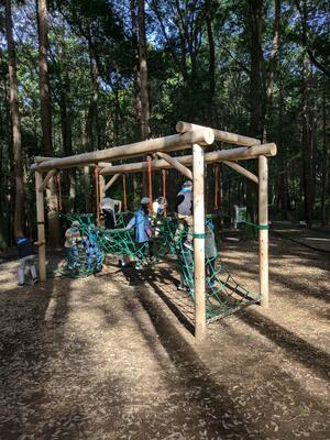 アスレチックで楽しんでいます。雨もまだ大丈夫です。
