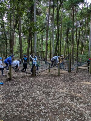 大自然の中で、ウォークラリーをした後、アスレチックを楽しんでいます。この後は、自然の家に入所して、プラネタリウムの見学になります。