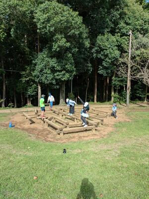 野外炊飯が始まりました。先ほどまでは雨が降っていましたが、今は、やんでいます。グループで協力してカレーを作っています。楽しみです。