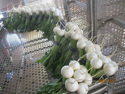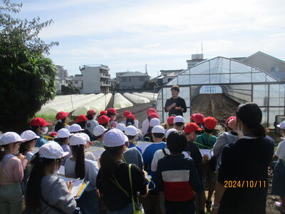 3年生が、地域のかぶ農家を見学に行きました。国道6号沿いに、こんなに広い畑があるのを知って、みんなびっくりしていました。今日の朝に収穫したかぶは、イオンに出荷したそうです。おいしいかぶを作るために、朝早くから作業をし、1つ1つ愛情を込めて作っていることがわかりました。