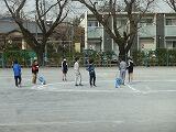 本日3校時、5年生が校庭で何かの活動をしていました。班ごとに、半径5mの円をラインカーで書き、その上をウオーキングメジャーでなぞっています。