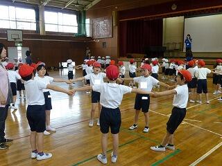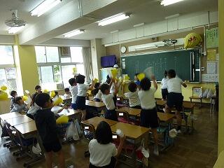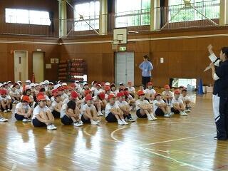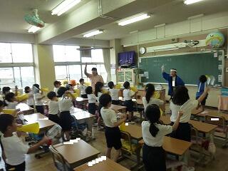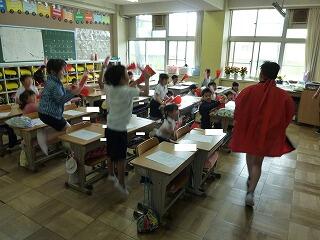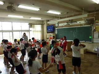 1年生の教室では、団長自らがやさしく丁寧にリードして教えていました。子どもたちも、それにこたえるように一生懸命に励んでいました。