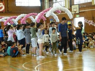 本日、4校時に「1年生を迎える会」を行いました。その後、お弁当をわくわくグループ(異年齢交流活動)で食べ、お昼休みにはわくわくグループで仲良く遊びました。