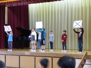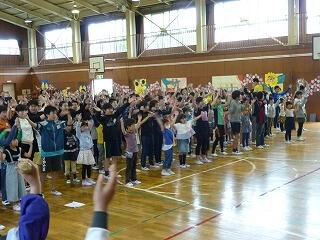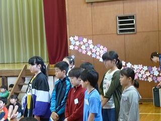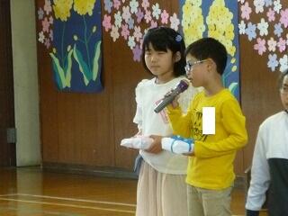 「1年生を迎える会」は、児童会が中心となり、クイズやゲーム、プレゼント、合唱等で楽しいひと時を過ごすことができました。児童会のメンバーがリーダーシップを発揮してくれて1年生も「楽しかった。」と言ってくれました。