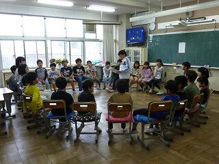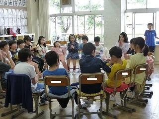 わくわく活動の様子です。6年生がリーダーとなり、下級生と一緒に遊ぶゲームを考えてくれました。天気が不安定であったので、本日は教室内での活動となりました。フルーツバスケット等、みんなで仲良く遊ぶことができました。