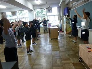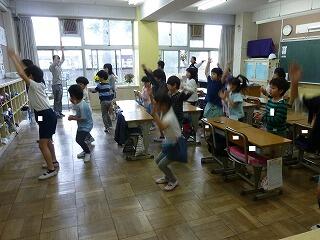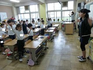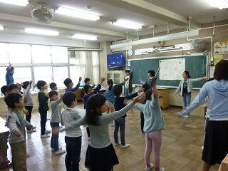 1年生を迎える会を明日25日(木)に行います。その中で、合唱「あしたははれる」を全校で歌うのですが、6年生が下級生の教室に出向き、振り付けを教えにいっています。