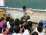 本日朝、給食委員が各教室に出向き、給食とコラボした「読み聞かせ」を行いました。1年1組担当の5年生男子は、始まる前はすごく緊張している様子でしたが、とても上手に読み聞かせを行っていました。終わった後は達成感を持つことができたのか、とてもいい笑顔を見せてくれました。