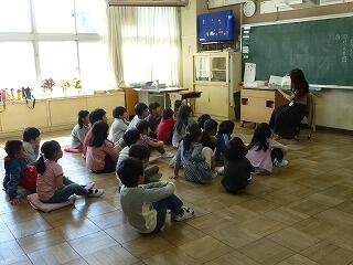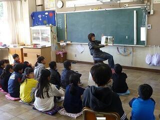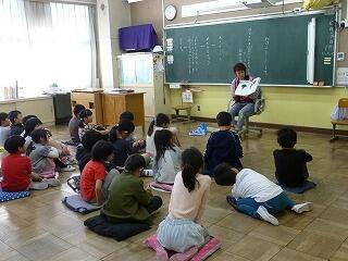 本校では毎週火曜日の朝、地域ボランティア「おはなしピーナッツ」さんの協力を得て、読み聞かせ活動を行っています。今年度は本日が初日で2~6年生で行っていただきました。全学級回ってみましたが、とくに低学年の子供たちが食い入るように聞いていたのが印象的でした。