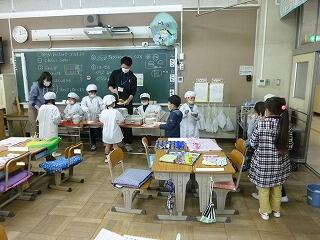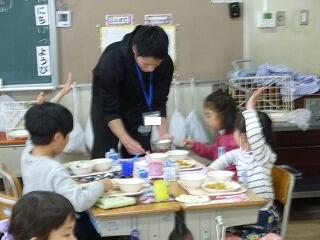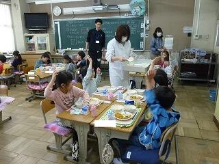 「いただきます」の号令後、おかわりを希望する児童も多くみられました。元気いっぱいで何よりです。