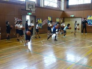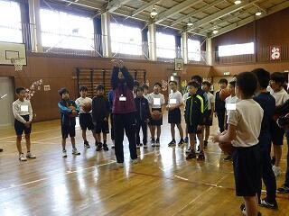 本校4年生以上の多くの児童は「部活動」として「スポーツクラブ」と「金管バンドクラブ」で活動しています。今朝は「スポーツクラブ」を見に行ってみました。5・6年生は体育館で「ミニバス」を、4年生はグラウンドで「基礎トレーニング」を行っていました。