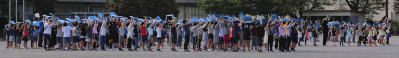 また2020年は旭東小学校創立40周年を迎えました。本校のシンボルである『ロケット号』を、児童一人ひとりが青色の画用紙を頭上に掲げる事によってロケット号を描き、航空機からの写真撮影を行った事もとっても印象的でしたね!