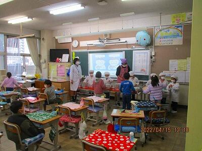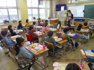 本日,一年生にとって小学校生活はじめての給食がありました。