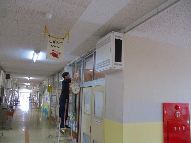 と教室の上の窓をきれいにすること②各教室の扇風機カバーを外して洗浄すること③各教室のドア