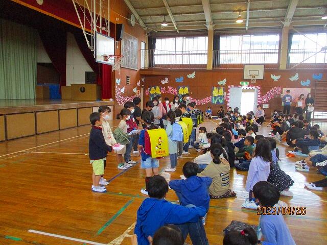 本日,3校時に体育館で「一年生を迎える会」を実施しました。司会・進行は,新児童会で