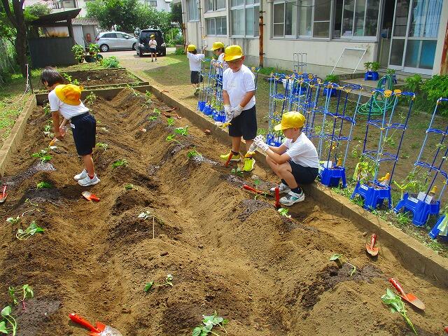 2年生のさつまいも植えを見ました