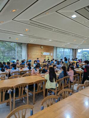 おはようございます。朝6時30分に起床し、荷物整理と掃除をしました。今から朝食です。みんな元気です。