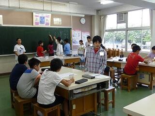 6年生の国語で、「パネルディスカッション」を行っていました。パネルディスカッションとは、相手の立場や意図をとらえながら話し合いをすることで, 主題に対する考えを深めていく活動です。1組では、主題を3種用意し、立場を変えて参加できるようにしていました。「なるほど」と感じさせるような説得力のある意見もあり、成長が感じられました。