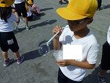 1年生が生活科の授業として、身近なものを使って「ふね」「みずでっぽう」を自作し、楽しんでいました。本日は、2回目でさらによくなるための改良や工夫を加えていました。「ふねがどうしたらもっと早く進むようになるのか」「みずでっぽうがどうしたら勢いよく水が出るようになるか」など、友だちとも意見交換しながら、様々な工夫を加えていました。自分の工夫に効果があることがわかると、喜びも大きかったです。