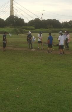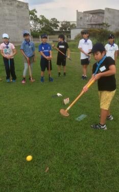 グランドゴルフ、3ホールめで雨が降り始め、撤収です。