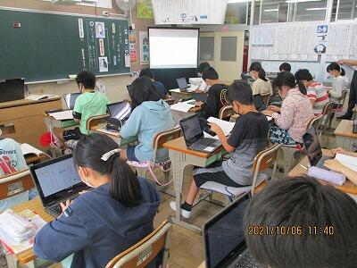 を読み取ってコラボノートにかいていました。6年生は,さらに単元シートを積み重ね,