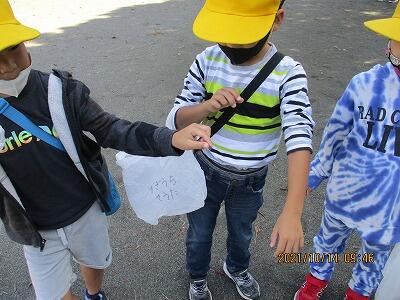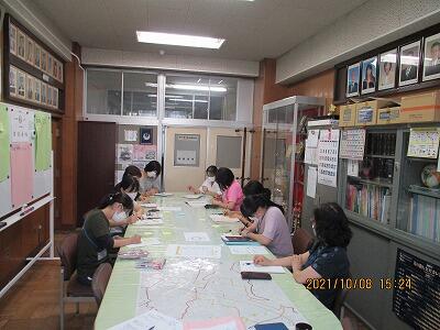 校外学習に行きました。予定通り10:35前後には,学区地図と役割分担表としつも
