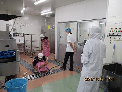 の立会いの下,給食室内部の環境維持について,食器等の衛生状況の調査が行われ