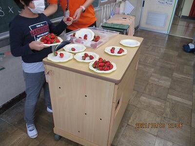 お皿にいちご(本物そっくり)を同じ数だけのせてもらっていました。同じ数がキー