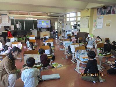 音楽の学習をしました。後半,見に行ったのですが,音に合わせてにこにこ