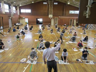 今日は2校時に体育館に行くと5年生が明日の林間学校の最終準備をしていました。